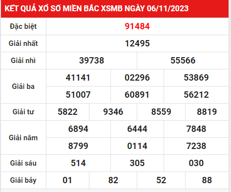 3. Tổng hợp kết quả Xổ số miền Bắc ngày 7/11/2023