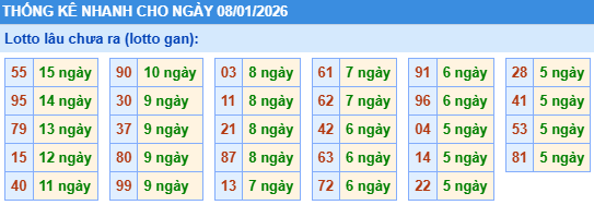 - Bảng thống kê lô gan Miền Bắc lâu chưa về tính đến ngày 8/1/2026