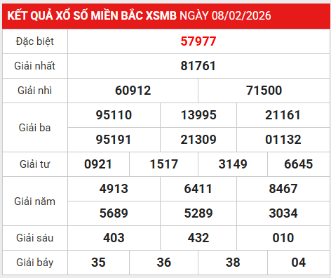 - Ngoài ra, KQXS miền Bắc hôm nay 57977