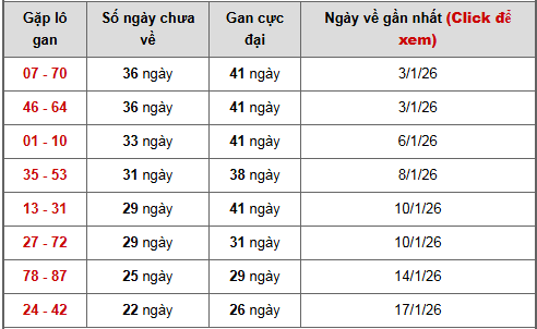 Bảng thống kê lô gan Miền Bắc đang cho thấy sự phân tầng khá rõ rệt giữa nhóm lô gan sâu và nhóm lô đang bước vào giai đoạn tích lũy. Khi các con số dài ngày bắt đầu tiến sát đỉnh chu kỳ, bảng gan thường xuất hiện những biến động khó lường, tạo nên thời điểm “giao thoa” dễ phát sinh nhịp nổ bất ngờ, là dữ liệu đáng tham khảo để dự đoán xổ số miền bắc ngày mùng 9 tháng 2.