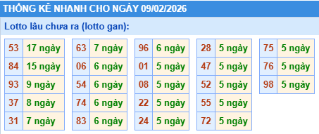 - Bảng thống kê lô gan Miền Bắc lâu chưa về tính đến ngày 9/2/2026
