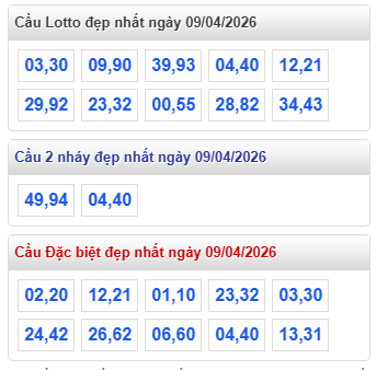 Lưu ý : "Quy luật đẹp nhất" là do hệ thống tự động tính toán theo một số tiêu chí mà XỔ SỐ WAP tính toán. Các bạn nên tham khảo dự đoán kết quả xổ số miền Bắc ngày 9 tháng 4 năm 2026 để tìm ra cặp xổ số đẹp nhất.