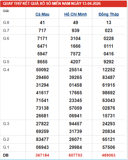 Cập nhật ngay bảng quay thử xổ số miền Nam ngày 13/4/2026 để săn tìm những con số may mắn và đón lộc tài. Đừng bỏ lỡ kết quả quay thử KQXSMN mới nhất hôm nay.
