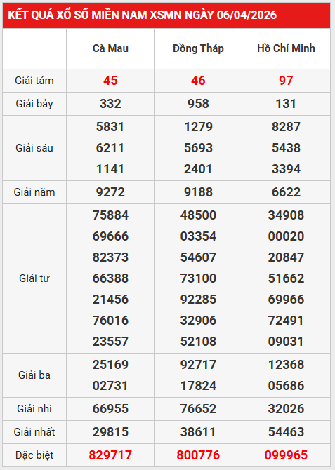 2. Thống kê miền Nam ngày 13/4/2026 hôm nay