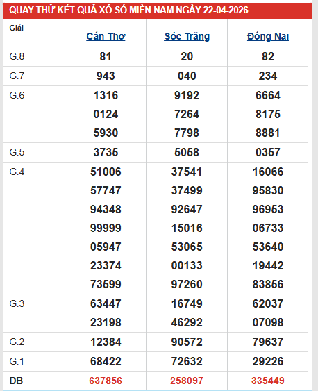Đừng bỏ lỡ bảng quay thử xổ số miền Nam 22/4/2026 với nhiều tín hiệu đáng chú ý. Theo dõi cùng dự đoán XSMN 22/4/2026 sẽ giúp nâng cao hiệu quả lựa chọn.
