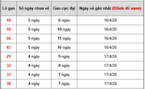 - Bảng thống kê lô gan Miền Nam ngày 22/4/2026