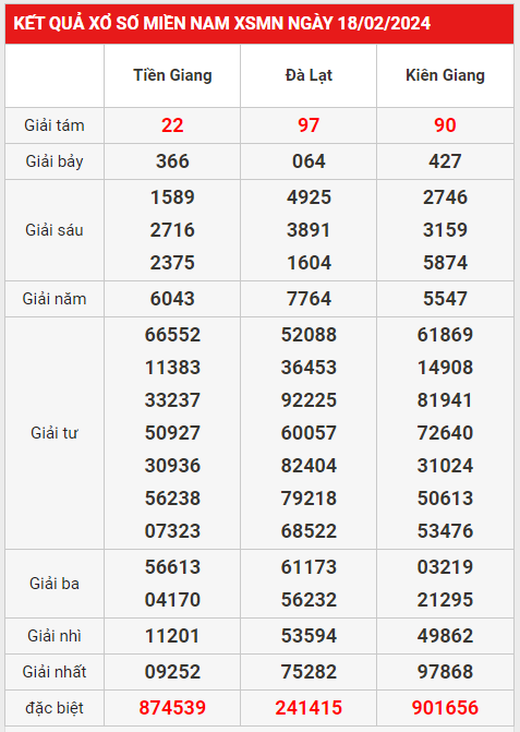Thống kê xổ số KIÊN GIANG ngày 25/2/2024:
