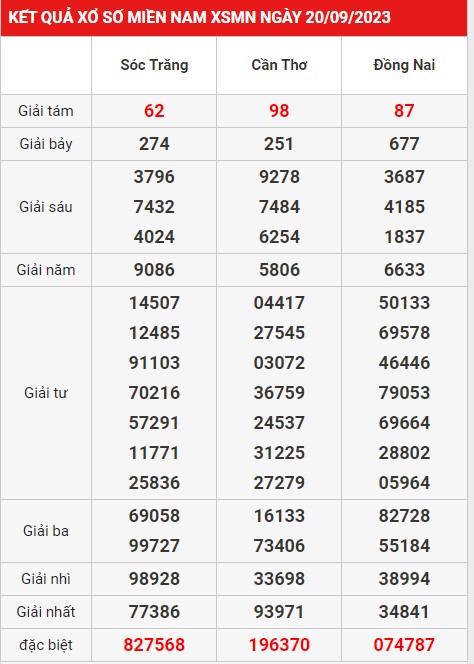 Dự đoán xổ số Miền Nam 27/9/2023 xác suất về cao cho anh em đam mê chơi lô đề làm giàu. xoso.wap.vn có những hệ thống máy tính hiện đại có nhiệm vụ phân tích thống kê kết quả XSMN chi tiết nhất. Mời anh em xem lại kết quả XSMN kì trước.