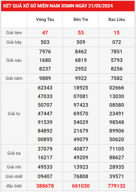 Thống kê xổ số BẠC LIÊU ngày 28/5/2024:
