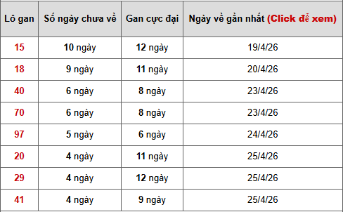 - Bảng thống kê lô gan Miền Nam ngày 30/4/2026