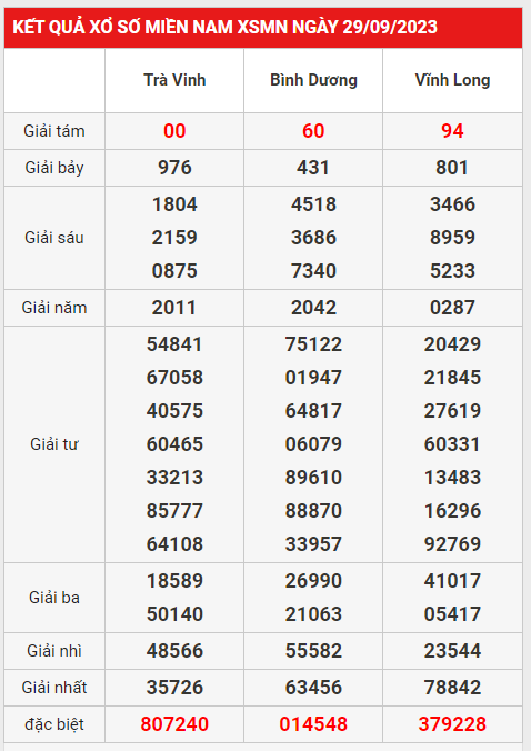 Dự đoán xổ số Miền Nam 6/10/2023 xác suất về cao cho anh em đam mê chơi lô đề làm giàu. xoso.wap.vn có những hệ thống máy tính hiện đại có nhiệm vụ phân tích thống kê kết quả XSMN chi tiết nhất. Mời anh em xem lại kết quả XSMN kì trước.