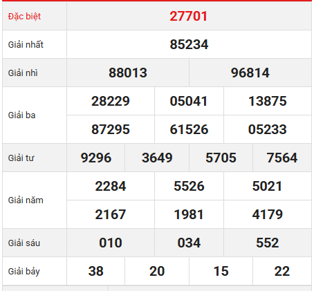Thống kê giải đặc biệt Miền Bắc trong 5 kỳ quay gần nhất