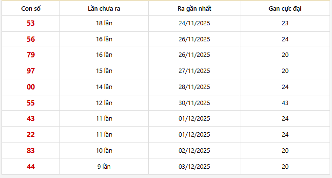 ⭐️ Cặp số lâu xuất hiện nhất XSMB (30 kỳ quay): 53 - 56 - 79 - 97 - 00 - 55