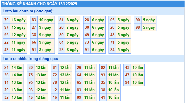3. Thống kê xổ số miền Bắc ngày 13/12/2025 - Dàn số đẹp Miền Bắc