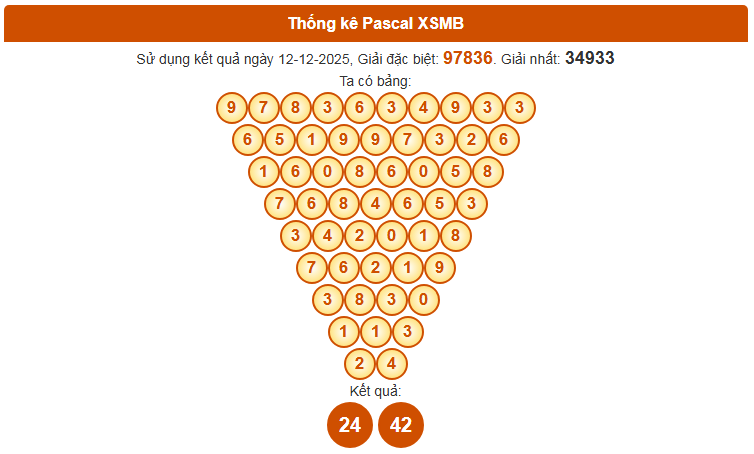 Phương pháp Pascal hiện được xem là một trong những cách dự đoán kết quả XSMB phổ biến và hiệu quả. Vậy bảng số Pascal hôm nay sẽ gợi ý những con số may mắn nào cho kỳ quay ngày 13/12/2025? Hãy cùng theo dõi ngay sau đây.