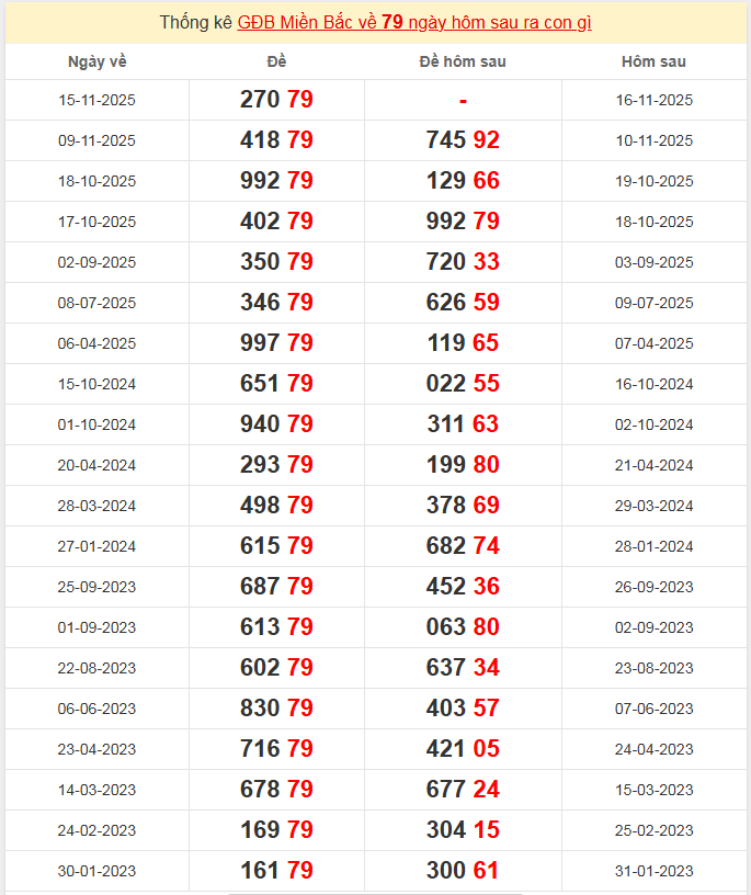 Đặc biệt về 79 ngày mai ra con gì? Xem tần suất ĐB hôm sau