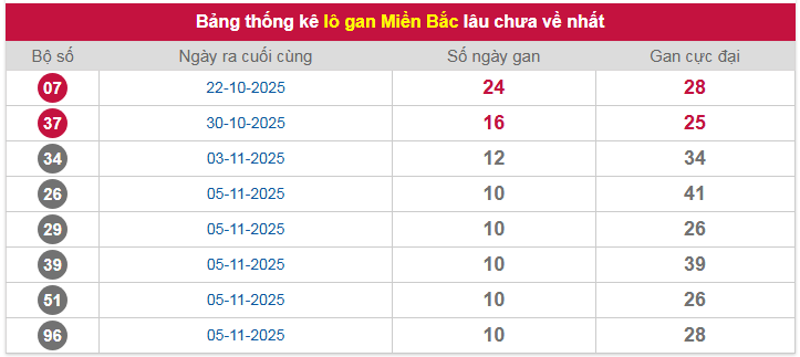 - Lô gan miền Bắc lâu chưa xuất hiện: 07 - 37 - 34 - 26 - 29