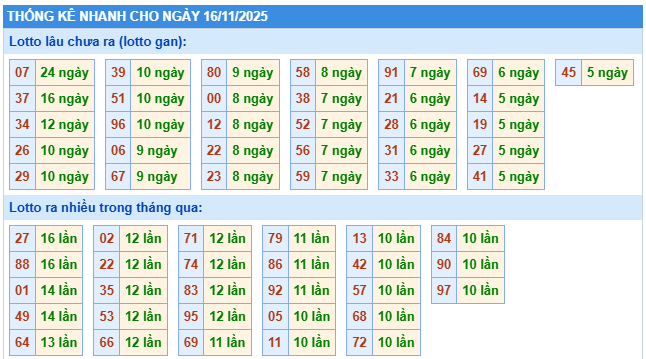 4. Thống kê lô tô KQXSMB hôm nay 16/11/2025