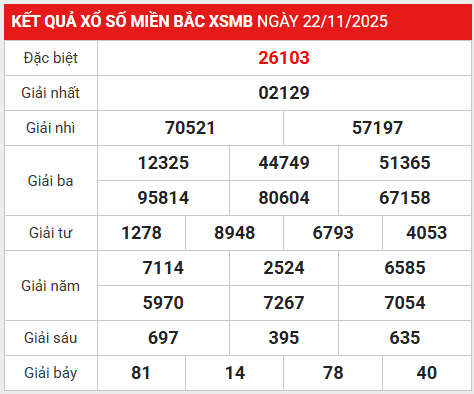 Kết quả tham khảo xổ số miền Bắc ngày 23/11/2025 được xác định chính xác nhờ vào việc phân tích kết quả các kỳ trước và áp dụng các phương pháp thống kê chuyên sâu.