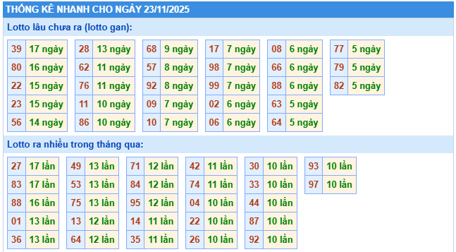 3. Thống kê xổ số miền Bắc ngày 23/11/2025 - Dàn số đẹp Miền Bắc