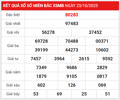 Để nắm bắt chính xác kết quả xổ số Miền Bắc ngày 24/10/2025, bạn nên xem xét kỹ dữ liệu của những kỳ trước, phân tích tần suất xuất hiện và các chỉ số thống kê để rút ra thông tin đáng chú ý nhất.