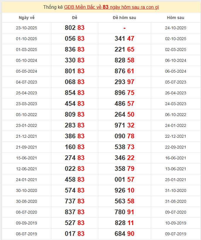 Đặc biệt về 83 ngày mai ra con gì? Xem tần suất ĐB hôm sau