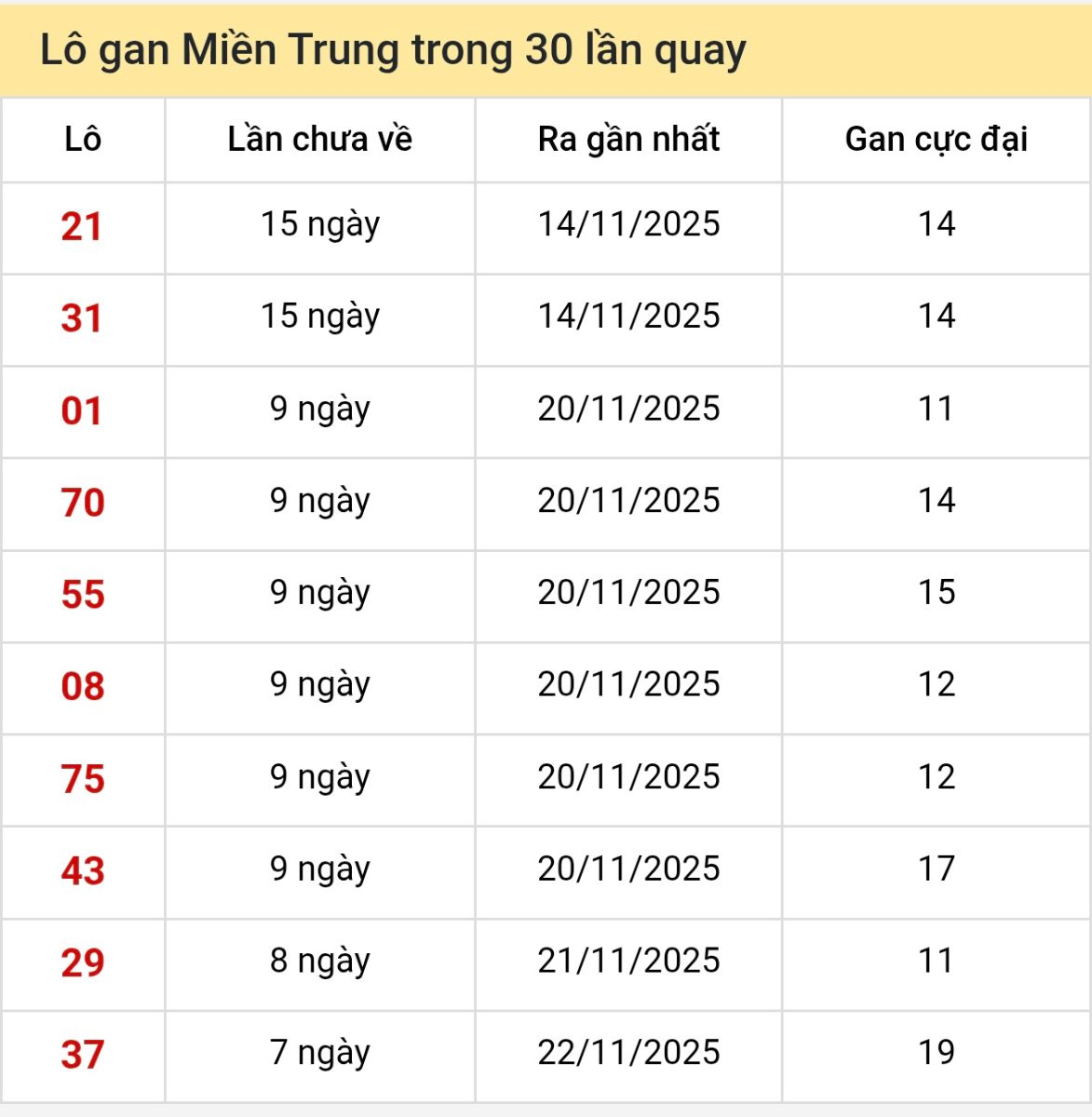 ⭐️ Cặp số lâu xuất hiện nhất XSMB (30 kỳ quay): 21 - 31 - 01 - 70 - 55 - 08