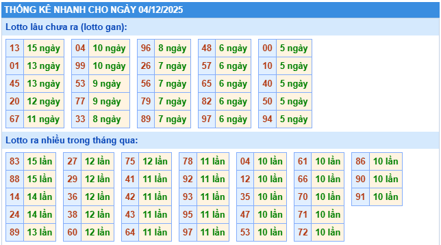 3. Thống kê xổ số miền Bắc ngày 4/12/2025 - Dàn số đẹp Miền Bắc