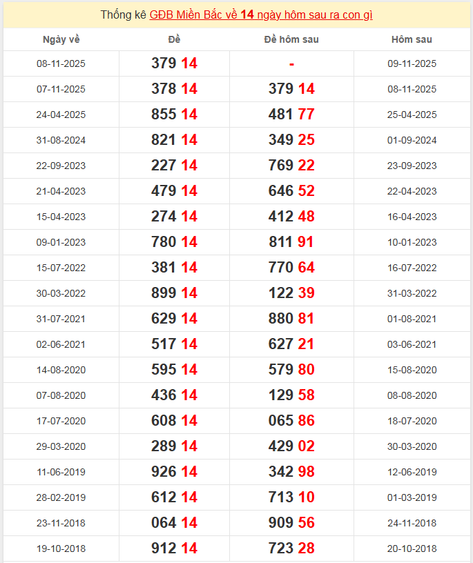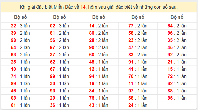 Đặc biệt về 14 ngày mai ra con gì? Xem tần suất ĐB hôm sau