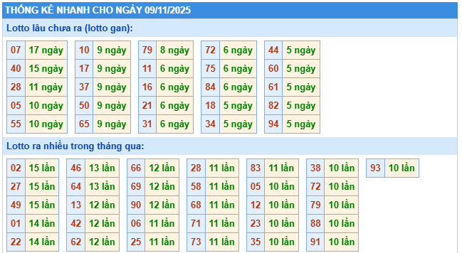 Thống kê lô tô Xổ số miền Bắc hôm nay 9/11/2025: