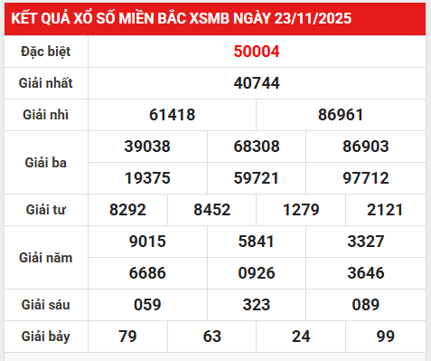 Tham khảo xổ số miền Bắc 24/11/2025 thứ 2 chính xác 100