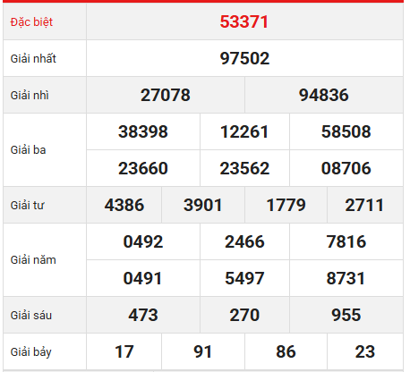 Thống kê giải đặc biệt Miền Bắc trong 5 kỳ quay gần nhất