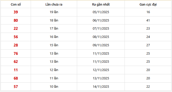 Thống kê 10 cặp lô khan Miền Bắc lâu chưa ra nhất