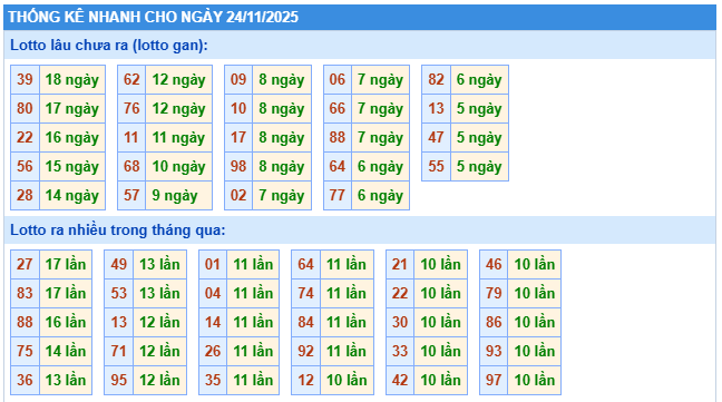 3. Thống kê xổ số miền Bắc ngày 24/11/2025 - Dàn số đẹp Miền Bắc