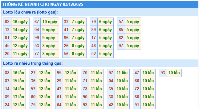 3. Thống kê xổ số miền Bắc ngày 3/12/2025 - Dàn số đẹp Miền Bắc