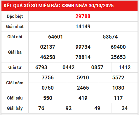 Dưới đây là những thống kê chi tiết kết quả XSMB của ngày hôm qua, phản ánh tần suất xuất hiện của các lô VIP, lô gan cùng chu kỳ của giải đặc biệt. Các dữ liệu này mang tính chất tham khảo, giúp người chơi có thêm cơ sở để lựa chọn con số cho kỳ quay ngày 31/10/2025.