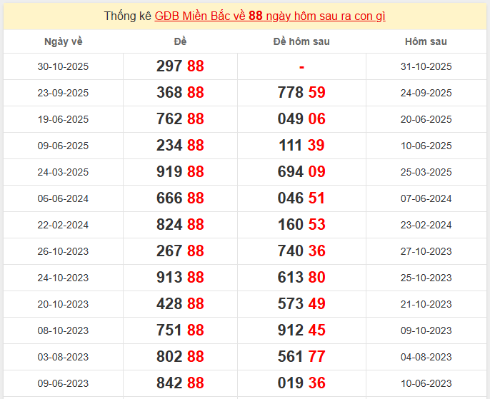 Đặc biệt về 88 ngày mai ra con gì? Xem tần suất ĐB hôm sau