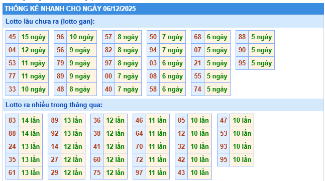 3. Thống kê xổ số miền Bắc ngày 6/12/2025 - Dàn số đẹp Miền Bắc