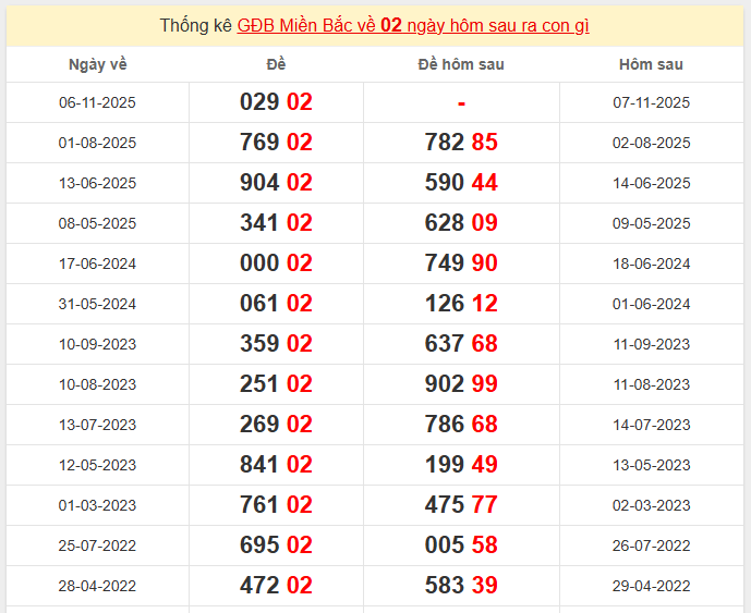 Đặc biệt về 02 ngày mai ra con gì? Xem tần suất ĐB hôm sau