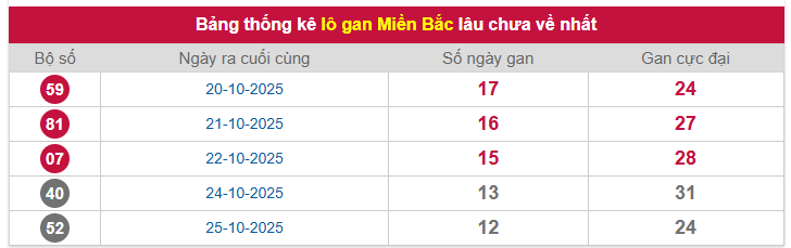- Lô gan miền Bắc lâu chưa xuất hiện: 59 - 81 - 07