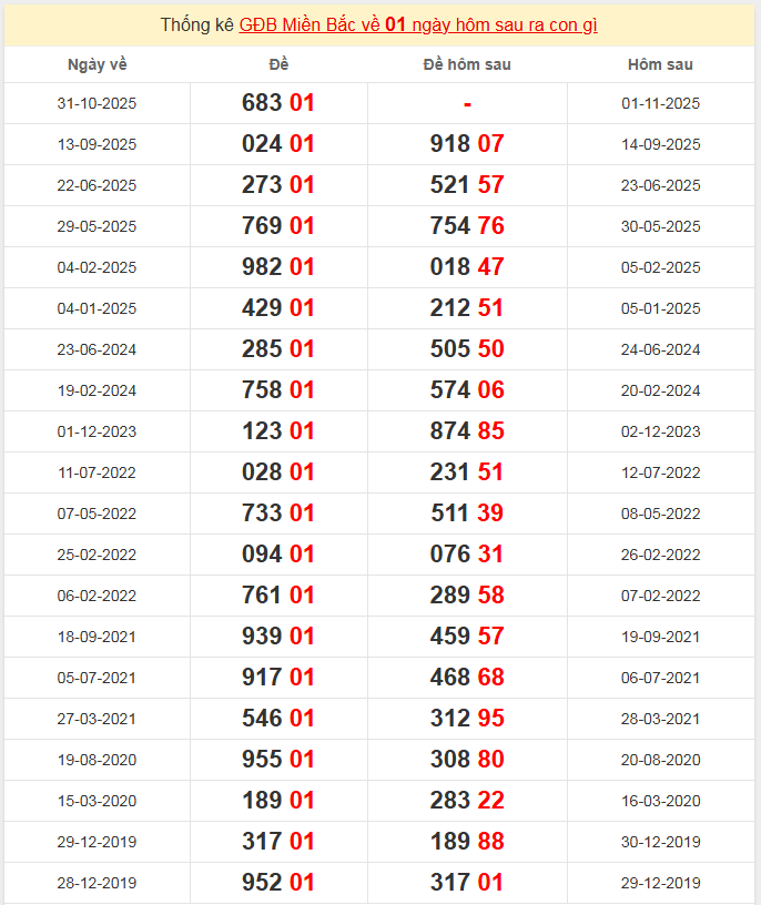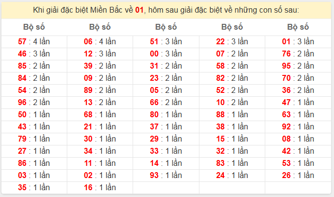 Đặc biệt về 01 ngày mai ra con gì? Xem tần suất ĐB hôm sau