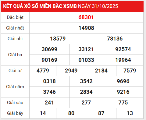 - Ngoài ra, KQXS miền Bắc hôm nay 68301