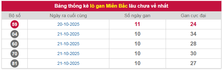 - Lô gan miền Bắc lâu chưa xuất hiện: 59 - 04 - 60 - 70