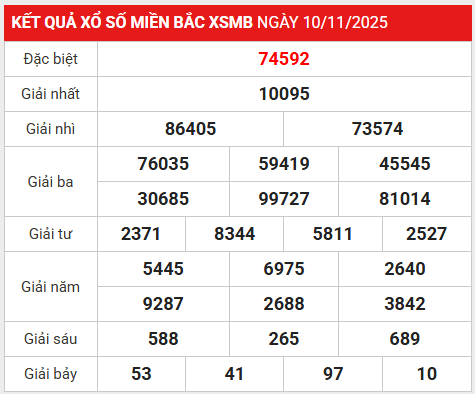 Dưới đây là bảng thống kê chi tiết kết quả XSMB ngày hôm qua, thể hiện rõ tần suất xuất hiện của các lô VIP, lô gan và chu kỳ giải đặc biệt. Những dữ liệu này mang tính tham khảo, giúp người chơi dễ dàng lựa chọn con số cho kỳ quay ngày 11/11/2025.