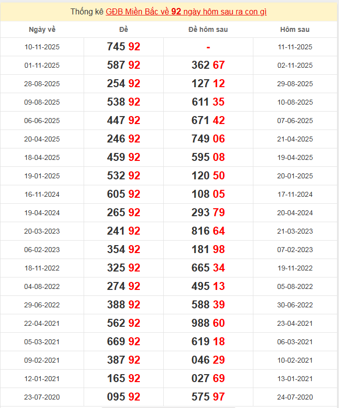 Đặc biệt về 92 ngày mai ra con gì? Xem tần suất ĐB hôm sau