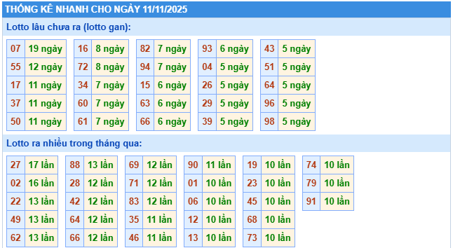 4. Thống kê lô tô KQXSMB hôm nay 11/11/2025