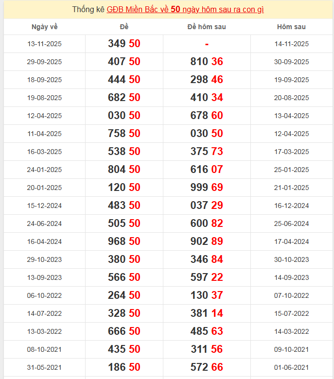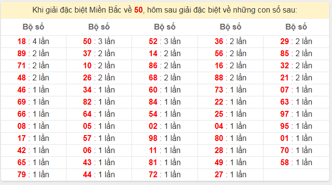 Đặc biệt về 50 ngày mai ra con gì? Xem tần suất ĐB hôm sau