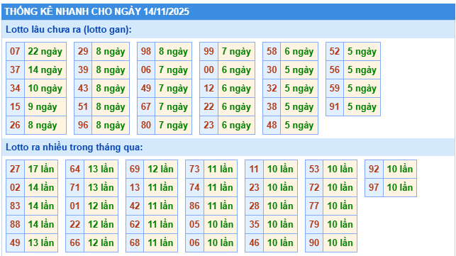 4. Thống kê lô tô KQXSMB hôm nay 14/11/2025
