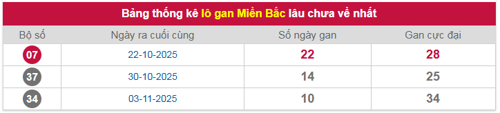 - Lô gan miền Bắc lâu chưa xuất hiện: 07 - 37 - 34