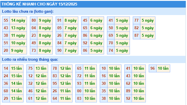 3. Thống kê xổ số miền Bắc ngày 15/12/2025 - Dàn số đẹp Miền Bắc